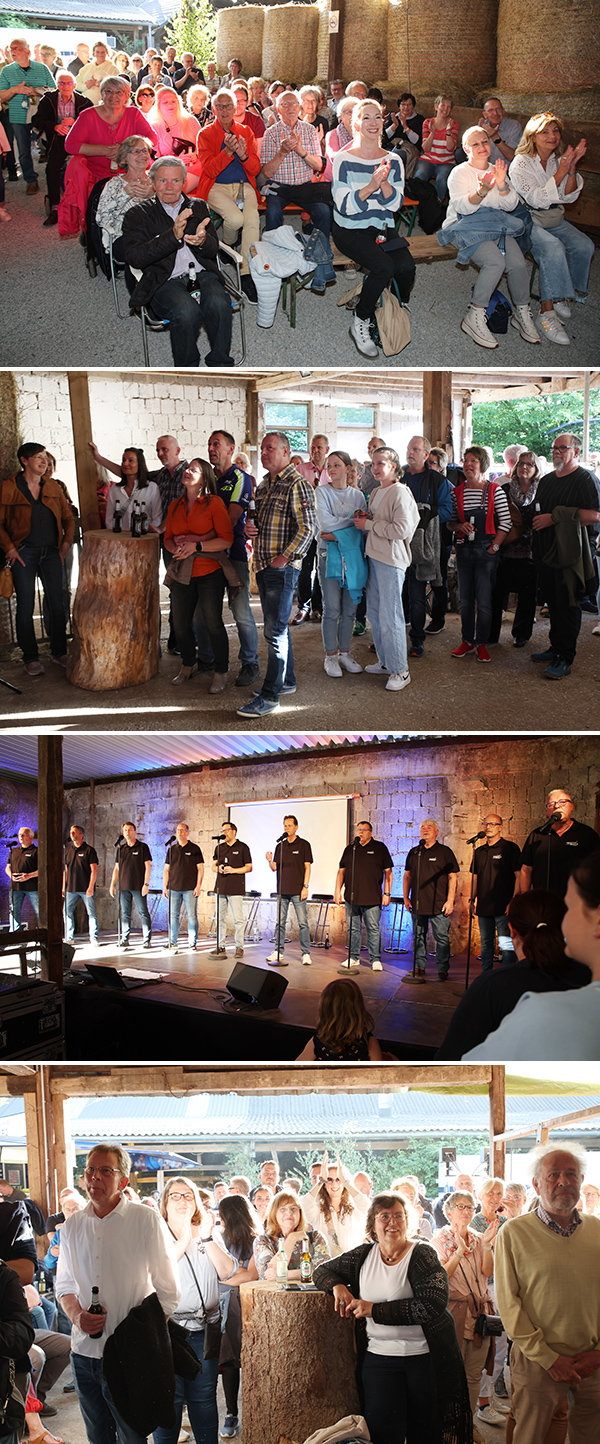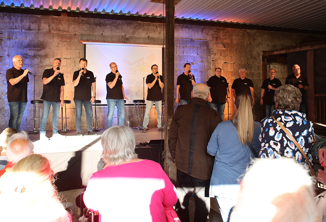 Das Konzert fand auf dem Hof Zimmermann in der Pernze statt, dessen Scheune zu einem halboffenen Saal umgestaltet wurde. Vor ausverkauftem Haus begrüßten die Voice Boys ihre Gäste musikalisch mit „Joden Daach“ von den Bläck Fööss, jener Band, die auch vor 30 Jahren schon A-cappella-Songs gesungen hat. Was folgte, waren drei Sets mit je 14 Songs aus den unterschiedlichen Genres. Oldies wie „Caravan of Love“, Schlager wie „Griechischer Wein“, internationale Songs wie „Homeless“, kölsche Tön wie „Wasser vun Kölle“ und unzählige amüsante Songs der Wise Guys, Basta oder Köbes Underground.
