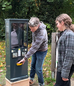Bergneustadt - Die Stadtverwaltung hat den Verkaufsautomaten nun bei der Volksbank aufgestellt - Direkt an dem neuen Angebot im Talpark wurde er mehrmals beschädigt (AKTUALISIERT).