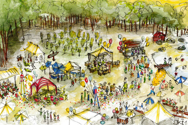 [Eine Zeichnung soll einen ersten anschaulichen Eindruck des Festivals vermitteln, das künftig einmal im Jahr stattfinden soll.]