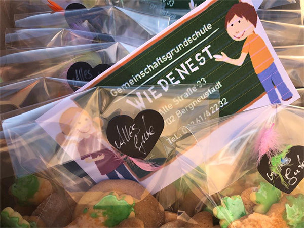 „Mit in den Beuteln ist auch eine Spende der Grundschule Wiedenest“, berichten sie weiter. „Stefanie Vormstein von der ‚Rengser Mühle‘ und Tini Wilmes aus dem ‚Eulennest‘ in Wiedenest haben ursprünglich für die Grundschule Plätzchen gebacken, die jetzt in 100 Päckchen gepackt mit an die Haushalte gehen.“ Rund zehn ehrenamtlich Helfer machten sich so gestern Morgen auf den Weg die Taschen auszuliefern.