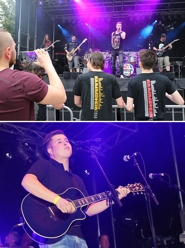 So startete mit der Beatles Tribute-Band „Help!“ das erste Highlight trockenen Fußes in „A Hard Day's Night“. In perfekter Bühnenpräsens präsentierten sie Klassiker wie „I Want to Hold Your Hand“, „Let it Be“ und natürlich „Help“. Egal ob Jung oder Alt: bei „Yellow Submarine“ alle sangen textsicher mit. „Super, ich bin überwältigt von der wahnsinnig tollen Musik und der Qualität mit der die Band das rüber bringt“, so eine begeisterte Vera Zielberg von der sponsernden AggerEnergie, die den Abend mit ihrer Tochter genoss.