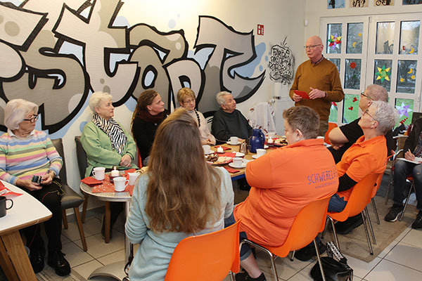 „Mir ging es darum, dass alleinstehende Menschen, vor allem Frauen, einen schönen Nachmittag haben – mit Kaffee, Kuchen und Gespräch. Stricken kann, aber muss nicht“, erzählt sie. Heute zählen rund 28 Frauen zur Gruppe, die montags zusammenkommen: „Hier ist Platz zum Lachen und Weinen. Ich bin einfach da und warte auf jede, die kommen möchte.“