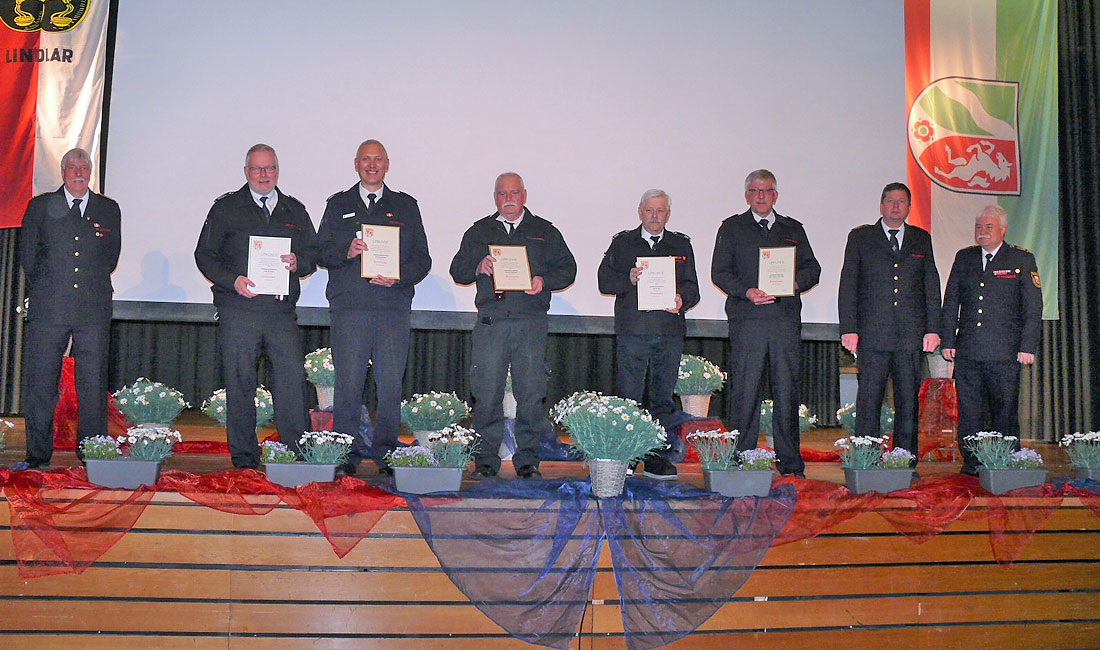Im Rückblick auf den Hömerich-Brand und die Starkregen-Katastrophe im vergangenen Sommer habe sich die professionelle Kooperation aller oberbergischer Hilfskräfte als beispielhaft erwiesen. Jetzt schon treffe der Kreis in Zusammenarbeit mit benachbarten Kommunen und der Polizeibehörden Vorsorge für künftige Notlagen wie die Folgen des Klimawandels, einem eventuellen Blackout oder der aktuellen Ukrainekrise. "Ich beneide sie als Feuerwehrleute um ihr automatisch abrufbares Wissen darum, was in der jeweiligen Lage zu tun ist", sagte Dr. Carsten Brodesser und dankte den Ehrenamtlichen von ganzem Herzen für ihren Dienst.