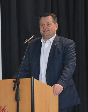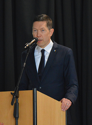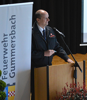 Gerards bezog sich laut einem Medienbericht auf eine Position im städtischen Haushalt. Dort sind 380.000 Euro für den Ausbau des Parkplatzes am Feuerwehrgerätehaus Dieringhausen veranschlagt. Konrads setzte die Kosten demnach mit denen eines Einfamilienhauses gleich und kritisierte den Nutzen. Zwar ruderte der Fraktionschef noch im Ausschuss zurück und wollte seine Aussagen missverstanden wissen, den Unmut von Politik und Bürgermeister hatte er sich da aber bereits zugezogen. Auch Kreisbrandmeister Julian Seeger (Foto) sagte in seinem Grußwort, dass er sich „einen Seitenhieb“ erlauben dürfe: „Wenn man sich die Zusammenhänge von Feuerwehreinsätzen und posttraumatischen Folge ansieht, hat das gar nichts mit Spielplatz zu tun!“