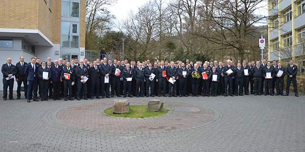 Im Anschluss nahm die Feuerwehr mehrere Ehrungen (60), Ernennungen bzw. Entlassungen (37), Überstellungen (17) und Beförderungen (48) vor. Auf 70 Jahre Mitgliedschaft in der Feuerwehr kann Jürgen von Montigny zurückblicken. Seit 60 Jahren verrichten Erhard Diehl, Peter Florkowski, Gunter Franken, Friedhelm Köster und Walter Krieger ihren Dienst für die Feuerwehr. Für 50 Jahre wurden Jürgen Bauer, Thomas Gerlach, Rainer Gräfer, Lutz Nöckel, Edgar Reichling, Michael Schwendt und Steffen Steinhauer geehrt.