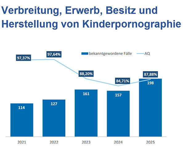 Im vergangenen Jahr sei extra für das Thema ein eigenes Kriminalkommissariat gegründet worden, wo IT-Experten die Polizisten unterstützten. Je mehr man suche, desto mehr findet man. Auch KI spiele inzwischen bei der Suche eine Rolle, die Entwicklung sei rasant. Die Polizei möchte aufklären und die Opfer schützen. Hier spielen auch mediale Kompetenzen bei Kinder und Jugendlichen eine Rolle, die explizite Fotos auch selbst teilten oder weiterleiten – und sich so strafbar machten. Die Zahlen beim sexuellen Missbrauch von Kindern stagnierten (2025: 59, 2024: 60). „Das ist ein schrecklicher Bereich. Wir wollen den Tätern das Handwerk legen“, sagte Gehrke. Die Aufklärungsquote sei in diesem Bereich mit 86,44 Prozent hoch.