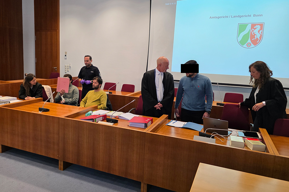 Seit Dienstag müssen sich deshalb Esat I. (28) und Saad J. (25) wegen versuchten Mordes in Tateinheit mit gefährlicher Körperverletzung vor einem Schwurgericht der 4. Großen Strafkammer am Landgericht Bonn verantworten. Die Staatsanwaltschaft wirft den beiden Syrern aus Bulgarien und Gummersbach heimtückisches Handeln vor. Sie sollen die Arg- und Wehrlosigkeit ihres Opfers ausgenutzt und unvermittelt auf es eingestochen haben. Demnach soll es um 1 Uhr nachts zu einem Streit in der Reichshofer Ortschaft gekommen sein. Dieser habe sich zu einer handfesten Auseinandersetzung zwischen Esat I. und Hassan P. entwickelt.