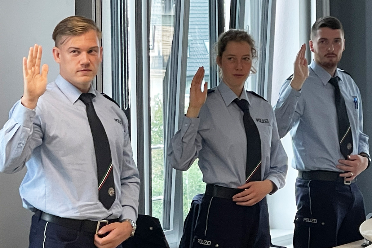 Gummersbach – Landrat Jochen Hagt vereidigte heute Morgen junge Polizisten, die künftig im Kreisgebiet auf Streife gehen.