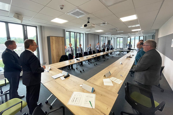 Landrat Jochen Hagt begrüßte am heutigen Morgen 25 Polizisten, die künftig im Kreisgebiet auf Streife gehen werden. Zwei Beamte kommen von auswärtigen Behörden, die Übrigen haben kürzlich ihre Ausbildung abgeschlossen. Zudem wurde ein ziviler IT-Experte eingestellt. Der Landrat wies die neuen Beamten auf die Besonderheiten im ländlichen Raum hin: „Der Oberbergische Kreis ist so groß wie Berlin, hat aber nur rund 270.000 Einwohner." Fahrten von bis zu 40 Kilometern zum Einsatzort seien daher keine Seltenheit. Zwar liege der Kreis bei der Sicherheit in Bezug auf die Kriminalität landesweit auf dem dritten Rang, er riet den Neulingen aber, sich bei prekären Einsätzen rechtzeitig Gedanken über entsprechende Verstärkung zu machen.