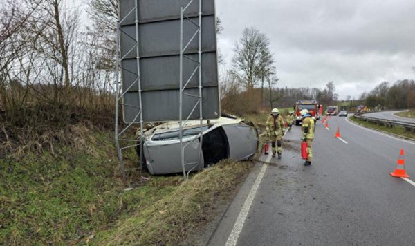 Überschlag auf dem Zubringer: Auto kracht in Verkehrsschild