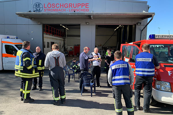 [Foto und Video: Michael Kleinjung --- Die Einsatzkräfte werden inzwischen von der Wache in Strombach aus koordiniert.]