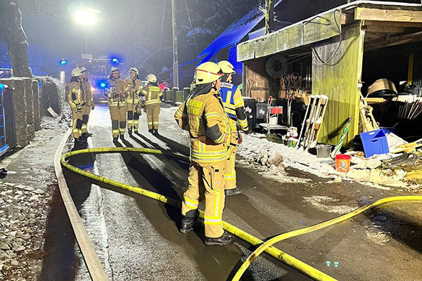 Reichshof - Nächtlicher Einsatz der Feuerwehr in Hunsheim - Übergreifen der Flammen auf umliegende Gebäude wurde verhindert.