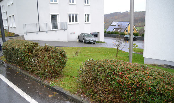 Auto durchbricht Hecke und kracht gegen Hauswand