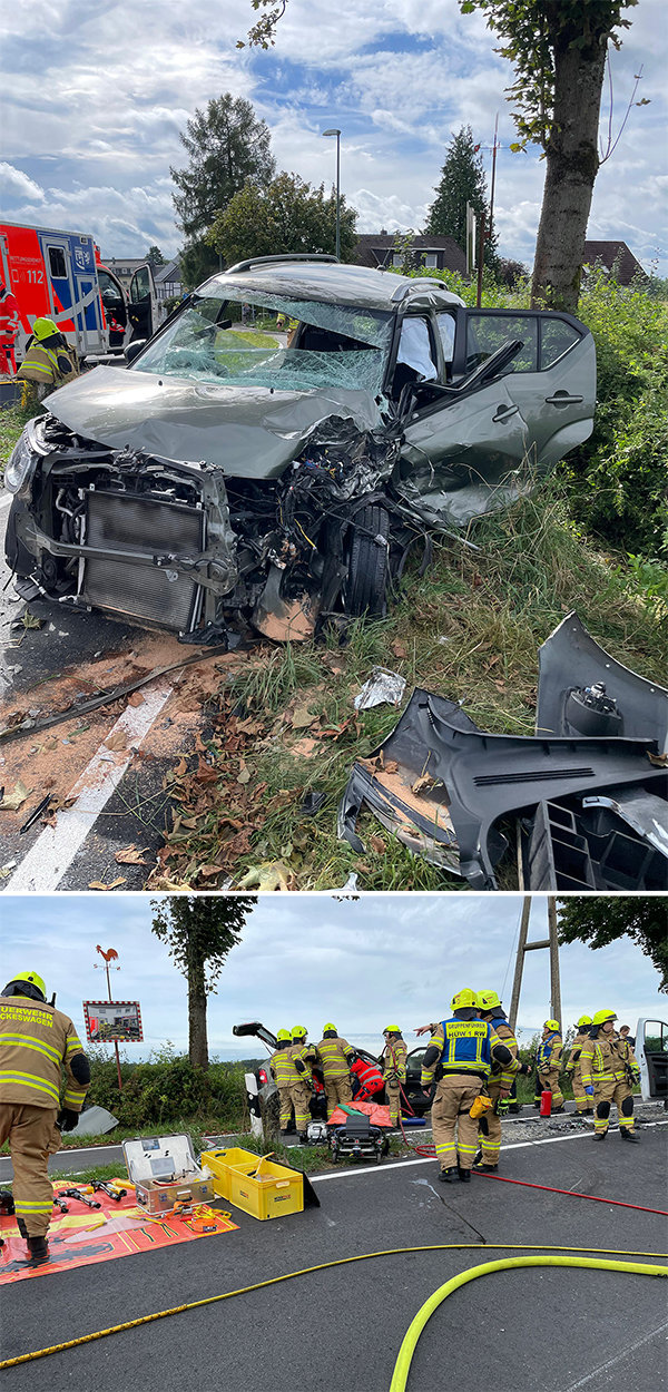 Hückeswagen – Schwere Verletzungen erlitt eine 38-Jährige nach Zusammenstoß im Gegenverkehr - Straßweg war für zweieinhalb Stunden gesperrt.