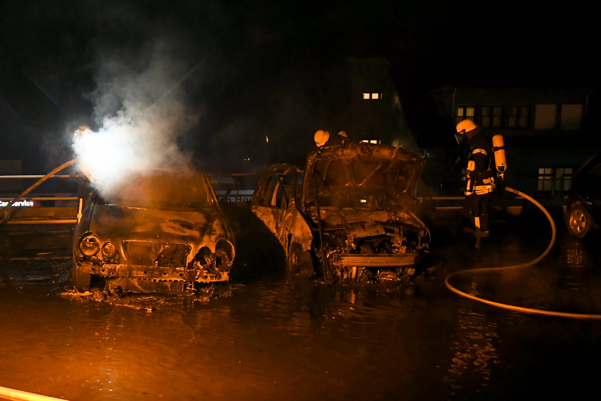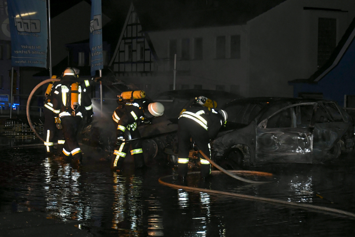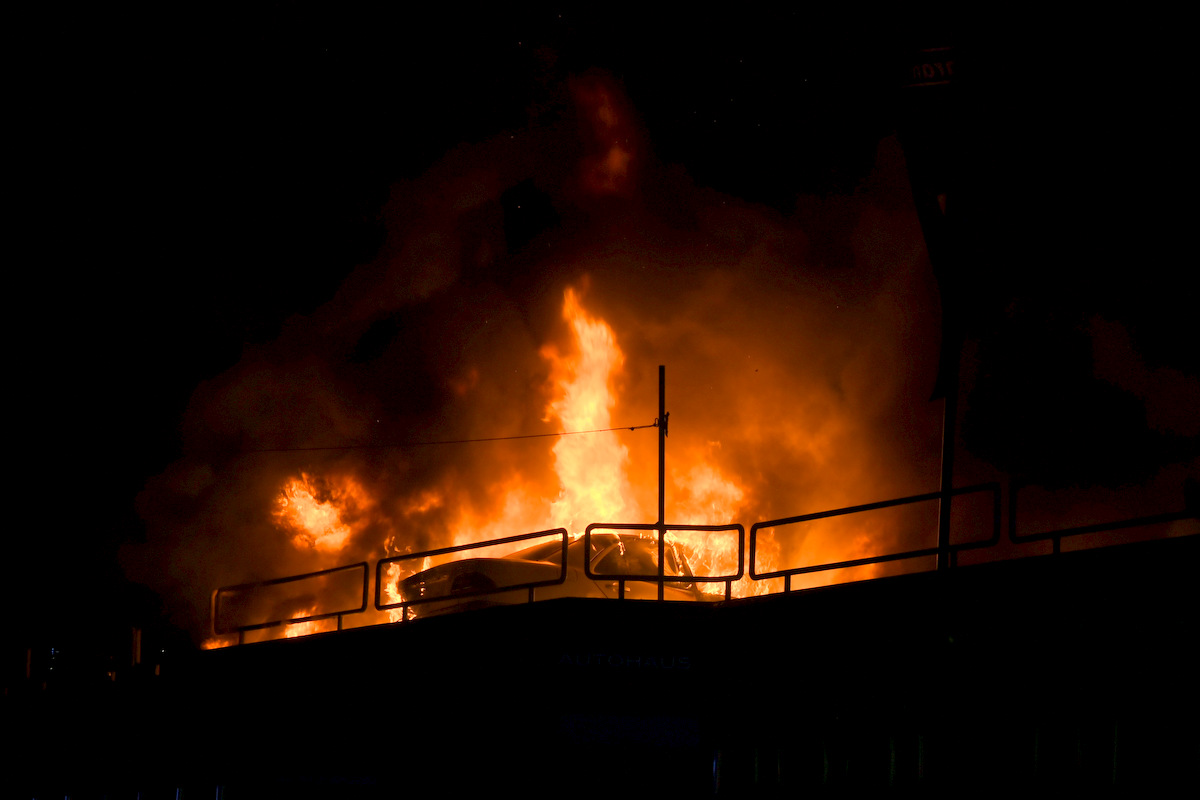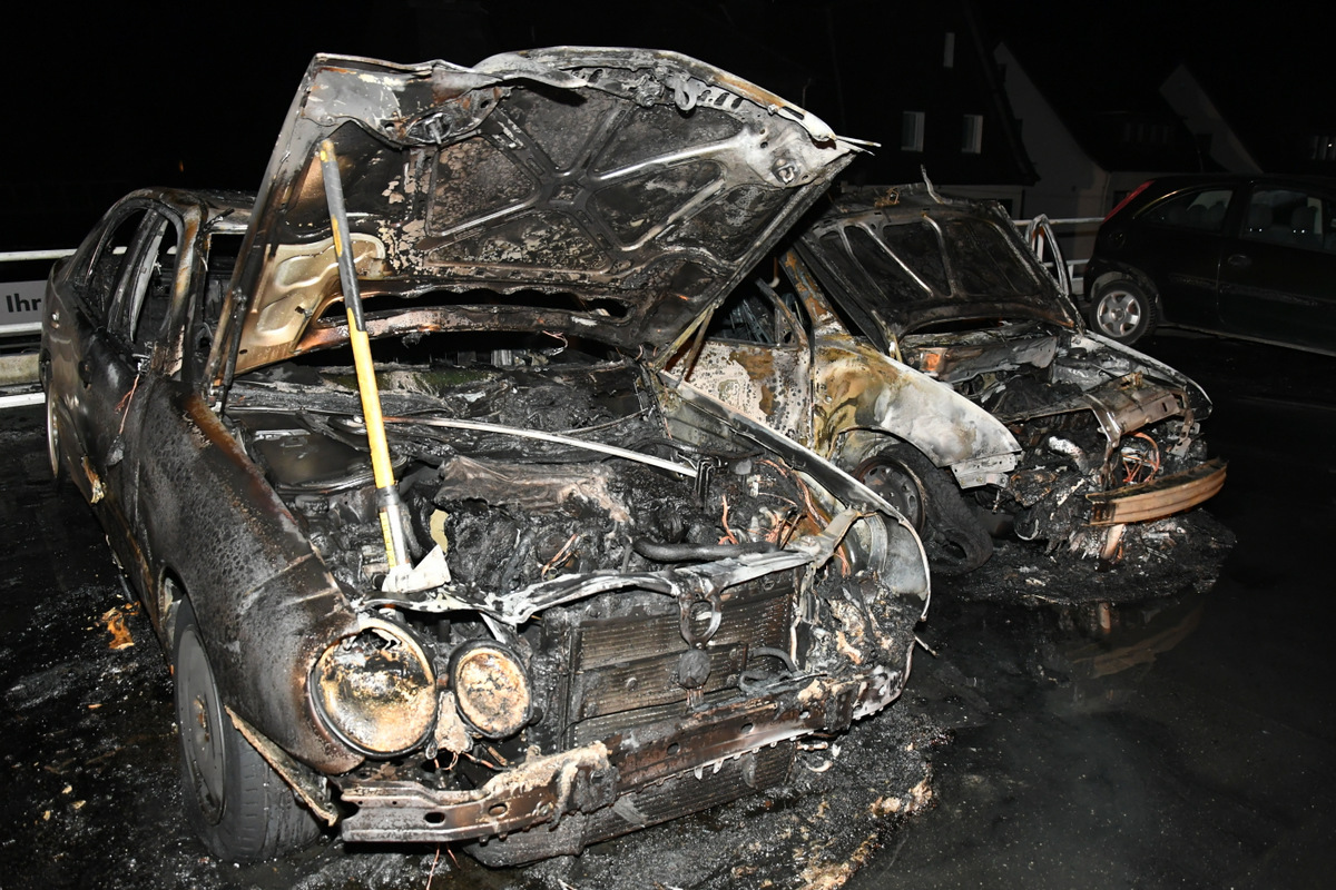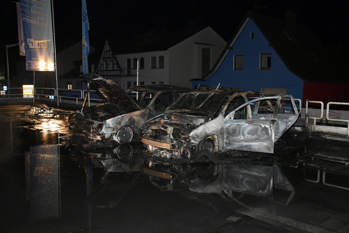 Engelskirchen - Auf der Parkfläche eines Autohauses standen heute Nacht zwei Wagen in Brand - Verletzt wurde niemand.