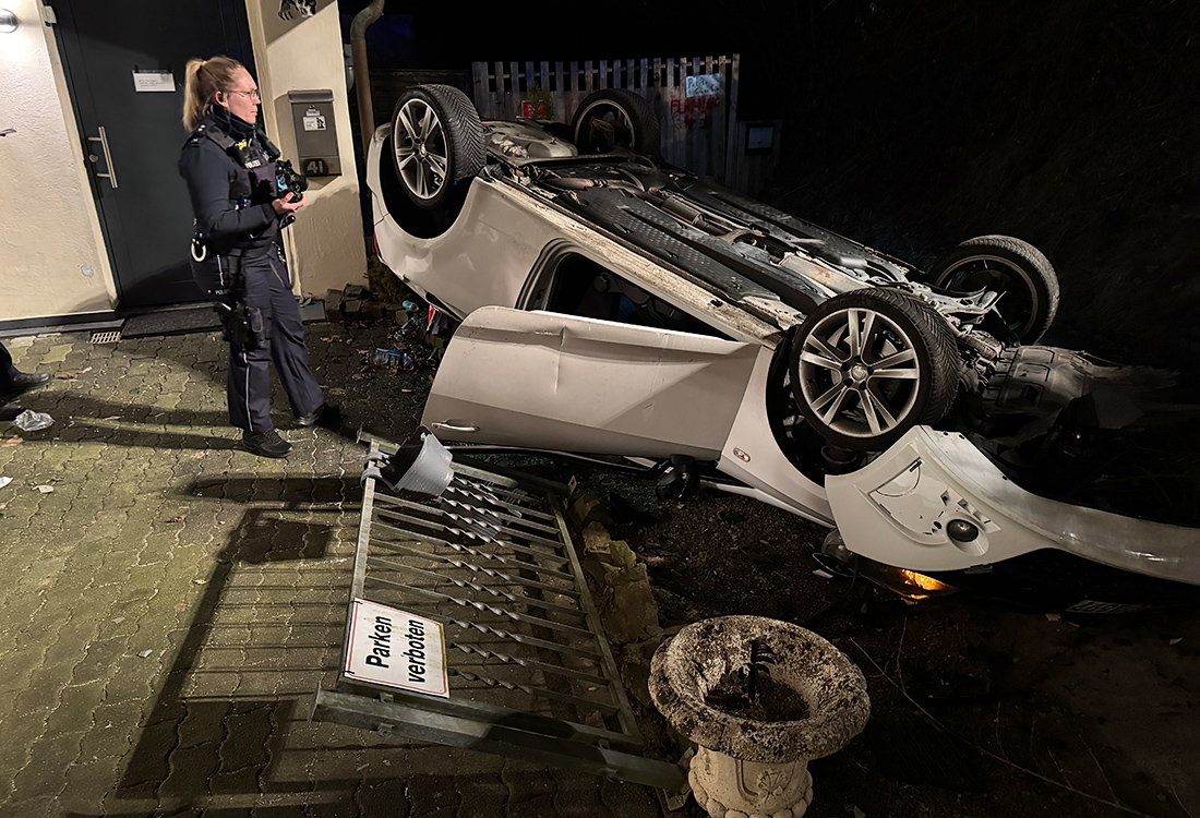 Ein 27-jähriger Bergneustädter ist gestern Abend gegen 22:30 Uhr in der Markstraße in Bergneustadt verunfallt. Der Fahrzeugführer kam aus derzeit ungeklärten Gründen in Höhe der Hausnummer 41 von der Fahrbahn ab, stürzte etwa vier Meter eine Böschung herunter, überschlug sich dabei und kam auf dem Dach liegend in der Grundstückseinfahrt zum Stillstand. Der Fahrzeugführer war laut einer Mitteilung der Polizei zunächst im Auto eingeschlossen, konnte jedoch selbstständig den Notruf wählen und Hilfe holen.