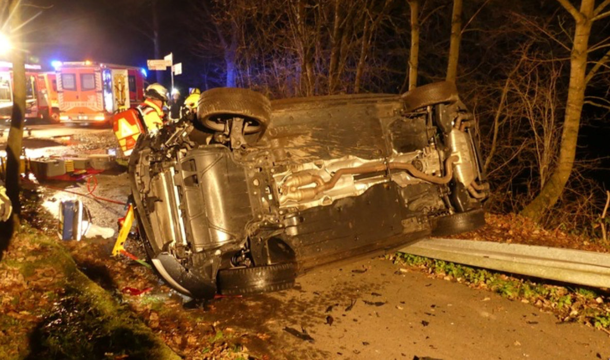 In der Nacht zum Samstag fuhr ein 50-jähriger Cupra-Fahrer auf der L 412 in Radevormwald von Heidersteg in Richtung Heide. Gegen 2:45 Uhr kam er von der Fahrbahn ab, überschlug sich mit seinem Wagen und prallte gegen die Leitplanke und einen Baum, teilt die Polizei mit. Der 50-jährige Radevormwalder verletzte sich leicht und wurde mit einem Rettungswagen ins Krankenhaus gebracht. Dort musste er nach einem positiven Alkoholtest eine Blutprobe und seinen Führerschein abgeben.