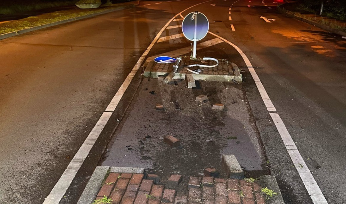 Radevormwald - 28-Jähriger hatte zu tief ins Glas geschaut und riss mit seinem Wagen ein Verkehrsschild aus dem Boden.