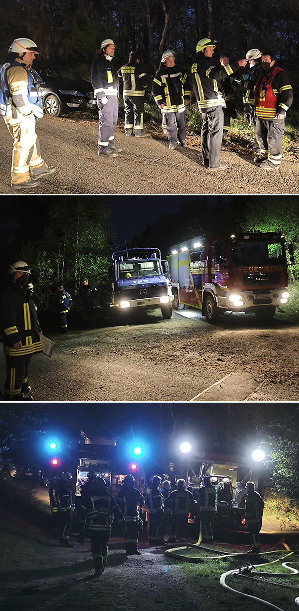„Als wir am Brand ankamen, standen bereits rund 300 Quadratmeter in Flammen.“ Die Feuerwehr habe sich zunächst dem Feuer entgegengestellt, doch die Situation war zu gefährlich. Die Feuerwand war rund 30 Meter hoch, so Hayer. Die Einsatzkräfte konnten sich und die Ausrüstung gerade noch retten. So blieb ihnen zunächst nichts anderes übrig, sich auf den Schutz der Häuser zu konzentrieren. Besonders um den Hof Hochhardt konzentrierten sich die Feuerwehrleute. Vorsorglich wurden rund 50 Kälber und zwei Pferde aus den Ställen mit Transportern in Sicherheit gebracht, während sich die Kühe auf der Weide unbeeindruckt zeigten von dem Trubel um sie herum. „Die Feuerwehr macht einen super Job“, lobte Petra Hochhardt die Arbeit, die gegen 18:30 Uhr vorsichtig durchatmete. Auch wenn das Feuer unter Kontrolle ist, wird der Hof weiter geschützt werden, sagte Hayer.