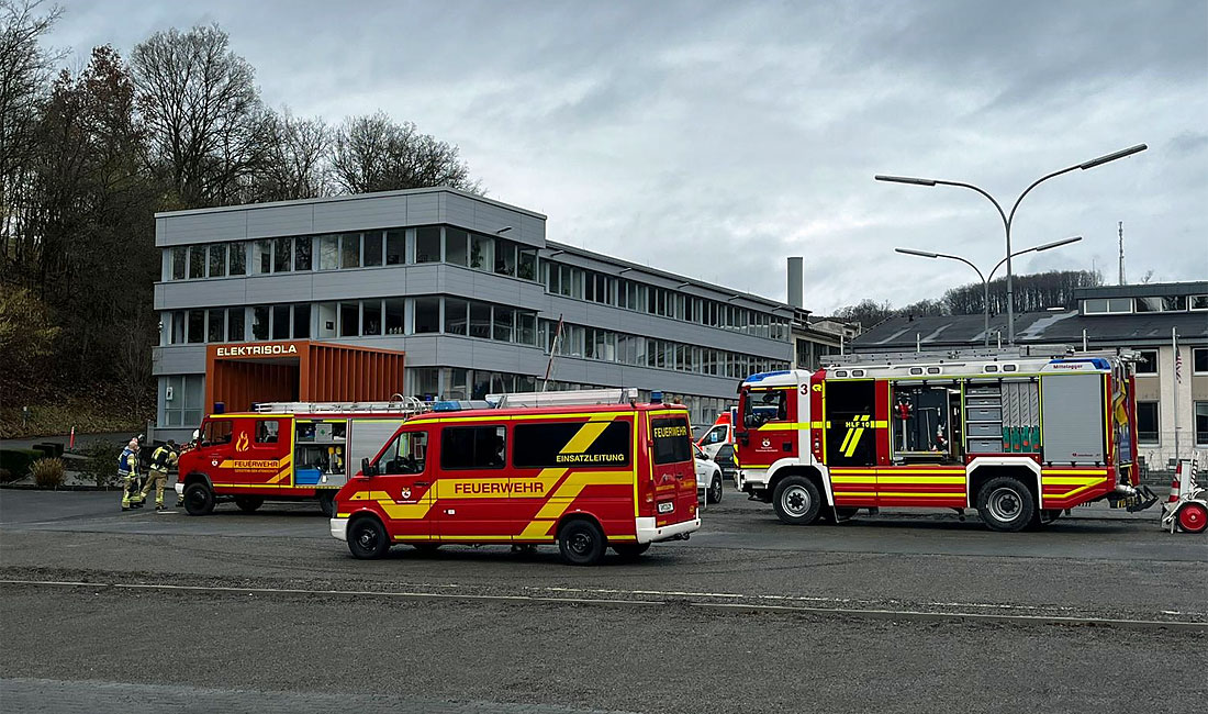Langwieriger Einsatz für die Feuerwehr bei der Firma Elektrisola in Eckenhagen: Dort hatte am Sonntagmorgen um 10:30 Uhr die automatische Brandmeldeanlage Alarm geschlagen. Die erste Erkundung ergab, dass die CO2-Löschvorrichtung in einem Gefahrstofflager ausgelöst worden war. Ein Feuer konnte nicht festgestellt werden.