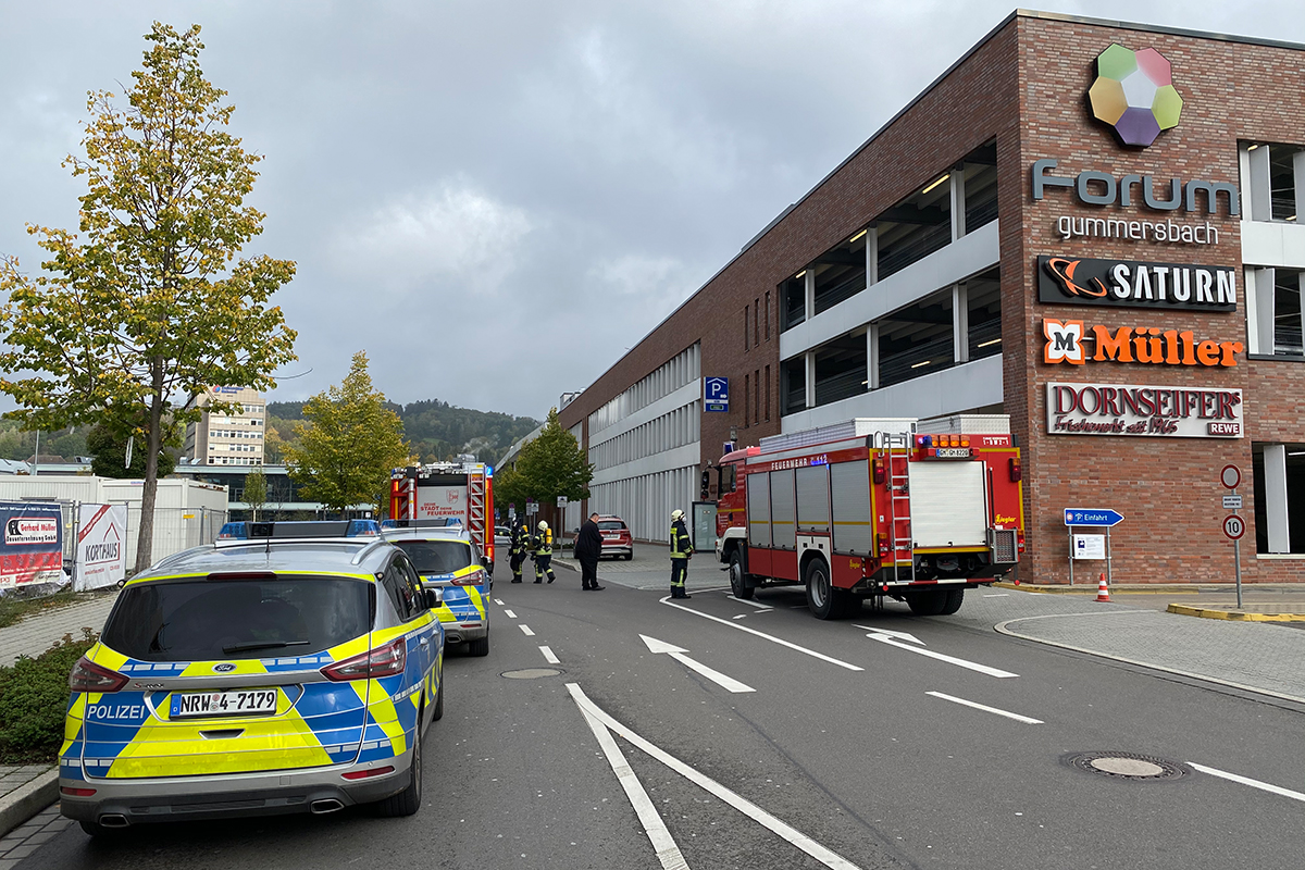 Für ein kleines Verkehrschaos rund um das Gummersbacher Forum sorgte am gestrigen Dienstagnachmittag ein Defekt in einer Sprinkleranlage des Einkaufszentrums. Gegen 17:30 Uhr verursachte nach Angaben der Feuerwehr Gummersbach ein kaputter Druckwächter den Alarm. Die Feuerwehr rückte mit etlichen Fahrzeugen der Hauptamtlichen und Freiwilligen Kräfte der Wache in Gummersbach sowie der Einheit Strombach-Lobscheid aus. Laut einem OA-Leser waren die Menschen im Forum über Durchsagen bereits zum Verlassen des Gebäudes aufgefordert worden als die ersten Einsatzkräfte eintrafen.