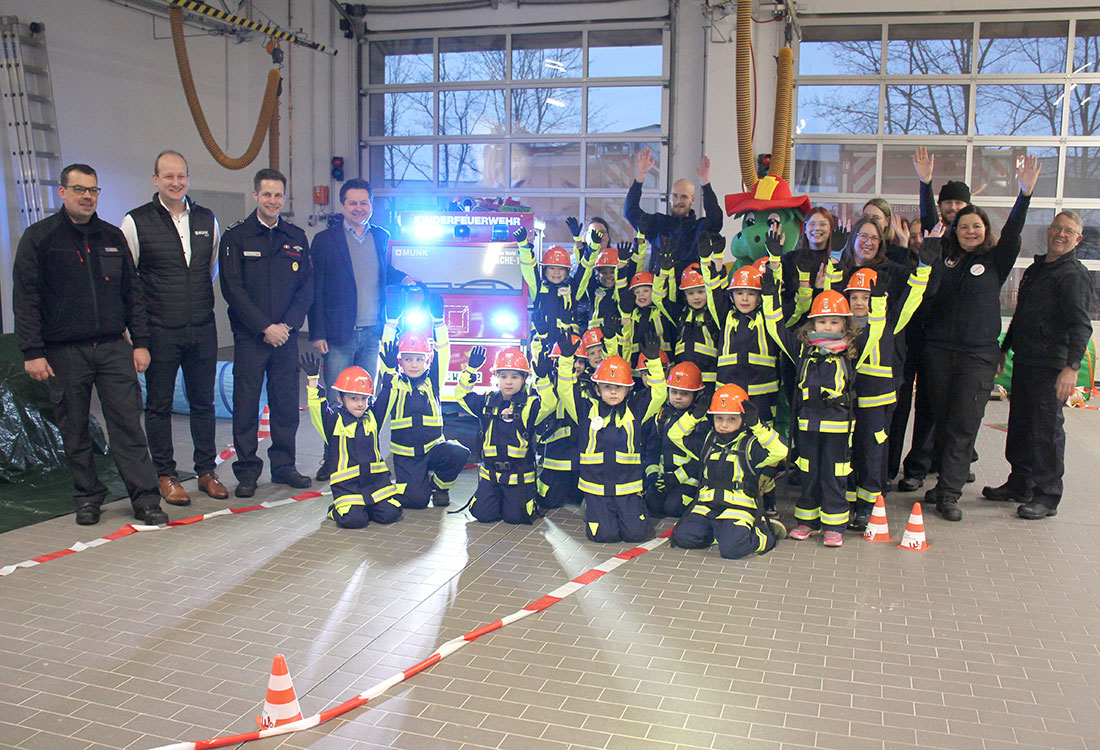 Ein voller Erfolg für Groß und vor allem für Klein: Seitdem die Wiehler Kinderfeuer im November gestartet ist, haben alle zwei Wochen mittwochs ab 16:30 Uhr 20 Kinder zwischen sechs und zehn Jahren und auch ihre insgesamt zehn Betreuer im neu eröffneten Feuerwehrgerätehaus in Bomig eine Menge Spaß. Kameradschaft und sozialer Zusammenhalt, ein spielerisches Heranführen an die Themen Feuerwehr und Brandschutz stehen bei den jüngsten Vertretern der Feuerwehr Wiehls im Zentrum (OA berichtete). Am Mittwochabend kamen die Kinder zu ihrem sechsten Dienst zusammen – und es sollte ein ganz besonderer werden. Denn mit dabei waren nicht nur Bürgermeister Ulrich Stücker und diverse Medienvertreter, den „Feuerdrachen“ wurde auch noch ein Mini-Löschfahrzeug übergeben, mit dem sie sich künftig schon fühlen können wie die erwachsenen Einsatzkräfte.