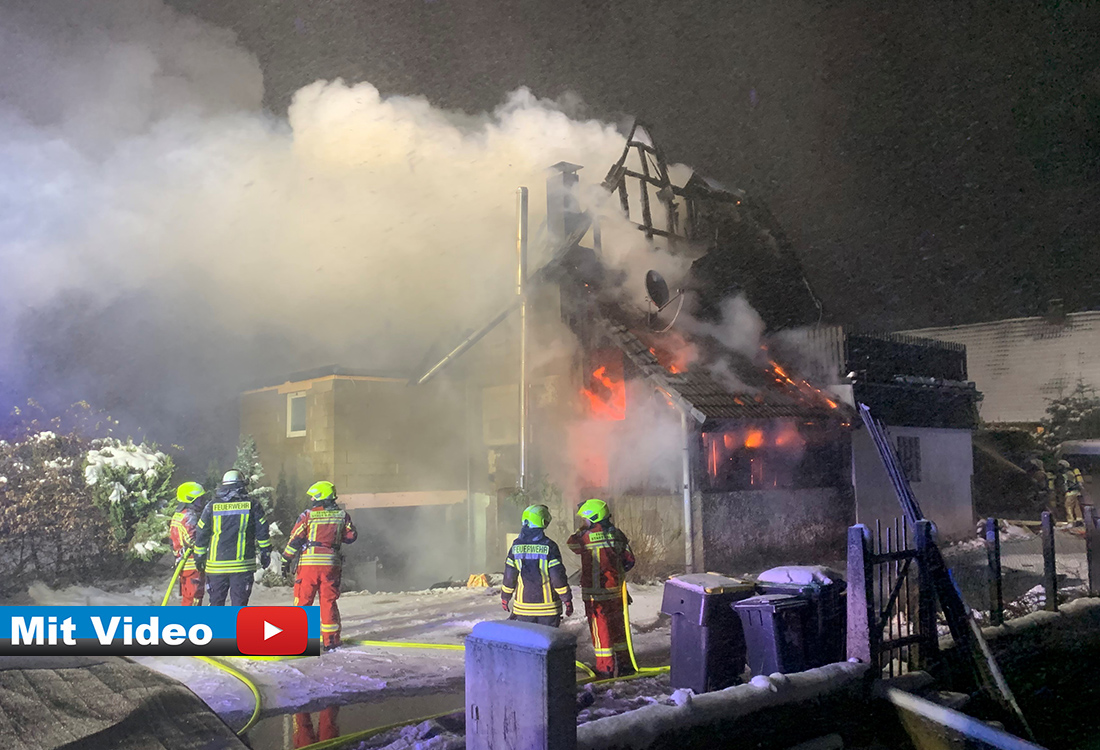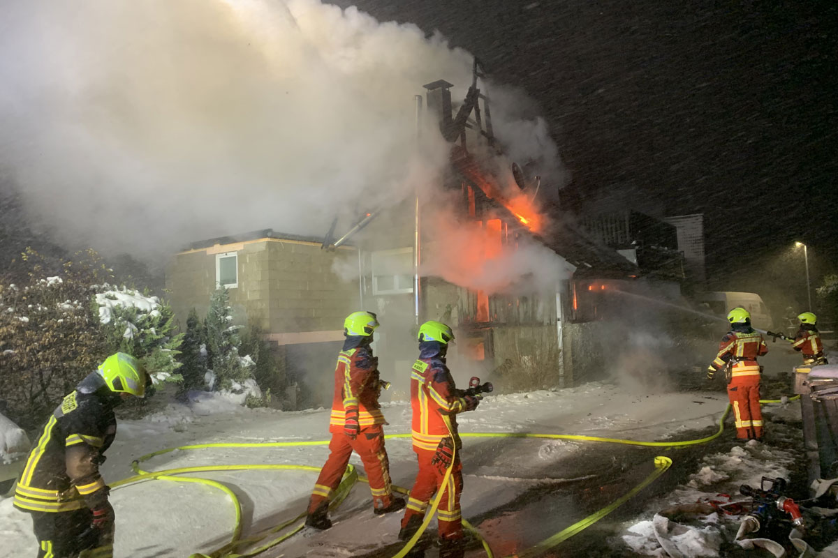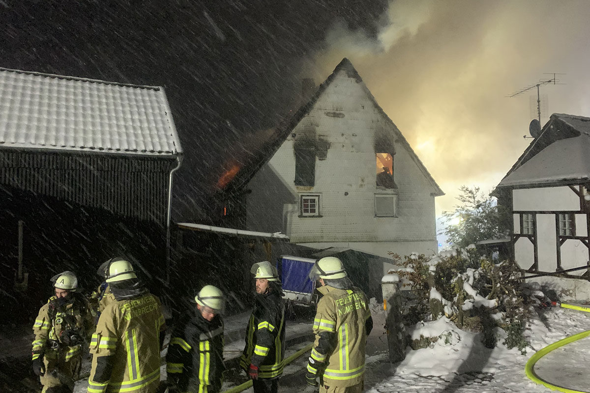 Nümbrecht - In Oberbreidenbach ist ein Wohnhaus bei einem Feuer zu einem Großteil zerstört worden - Brandbekämpfung dauerte die ganze Nacht - Keine Verletzten - Schneeglätte behinderte die Löscharbeiten (AKTUALISIERT).