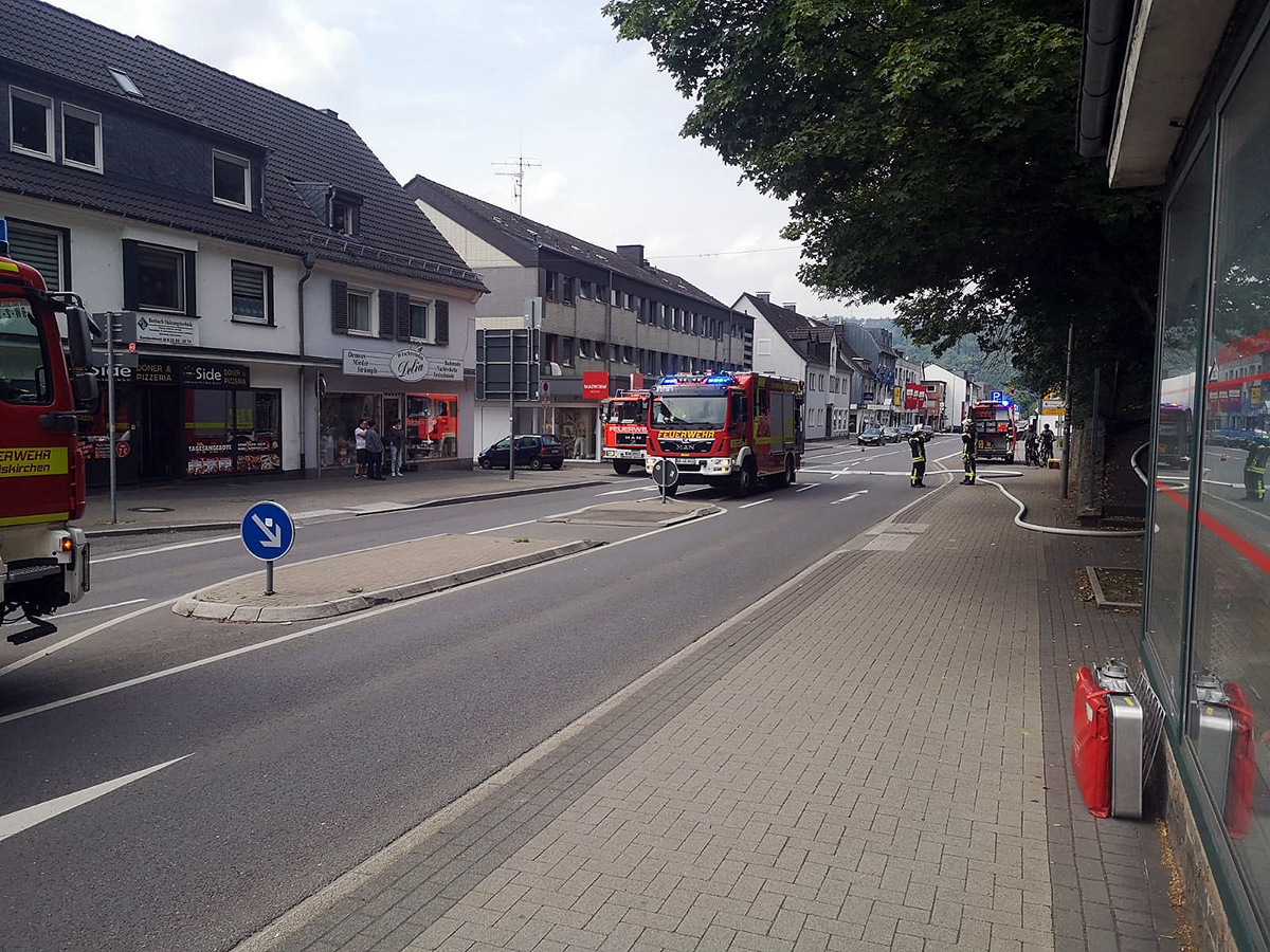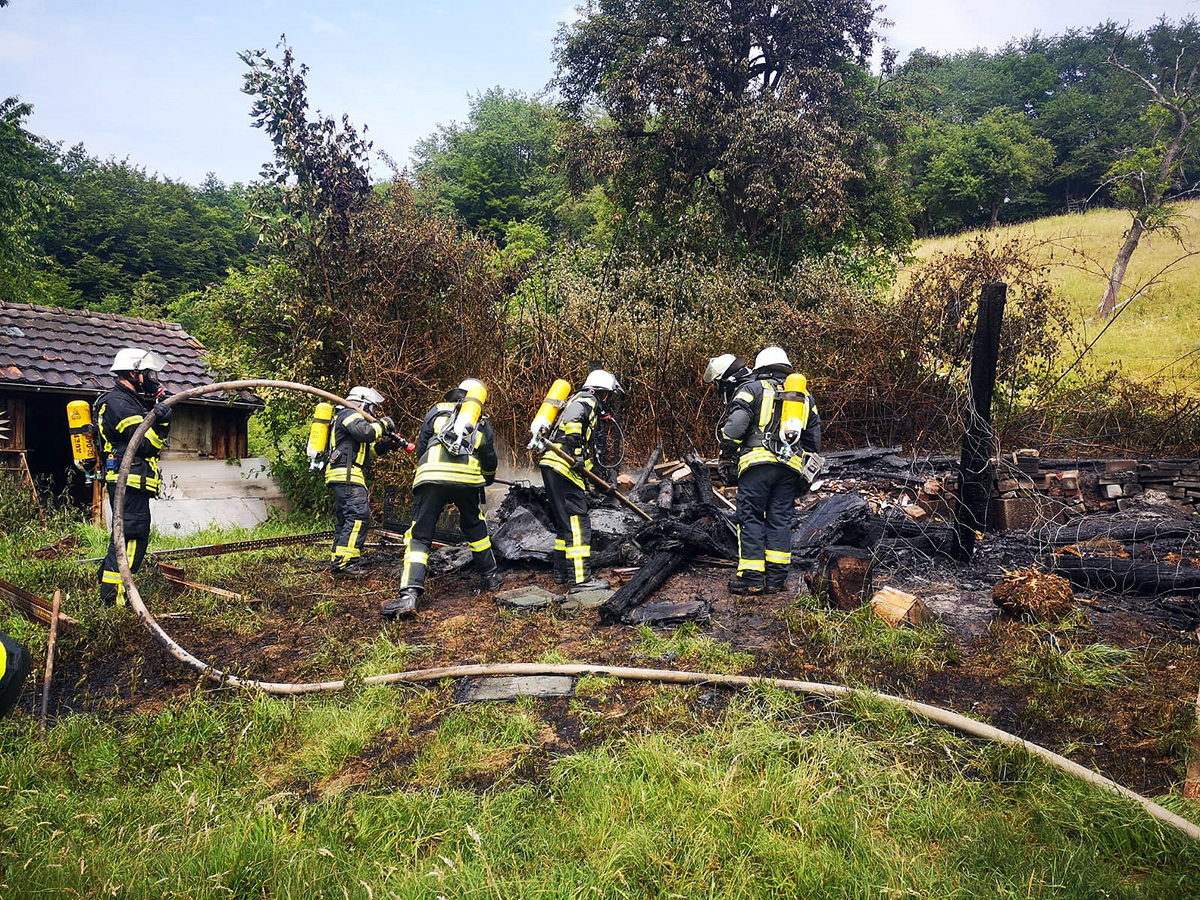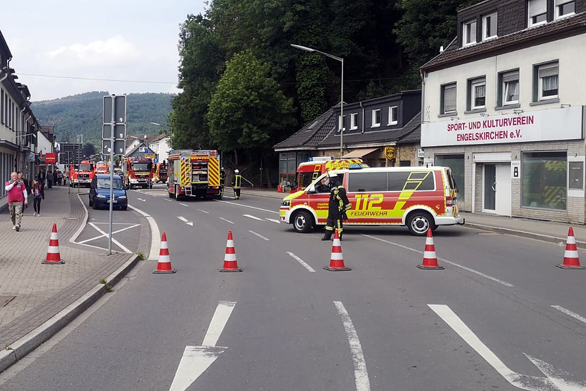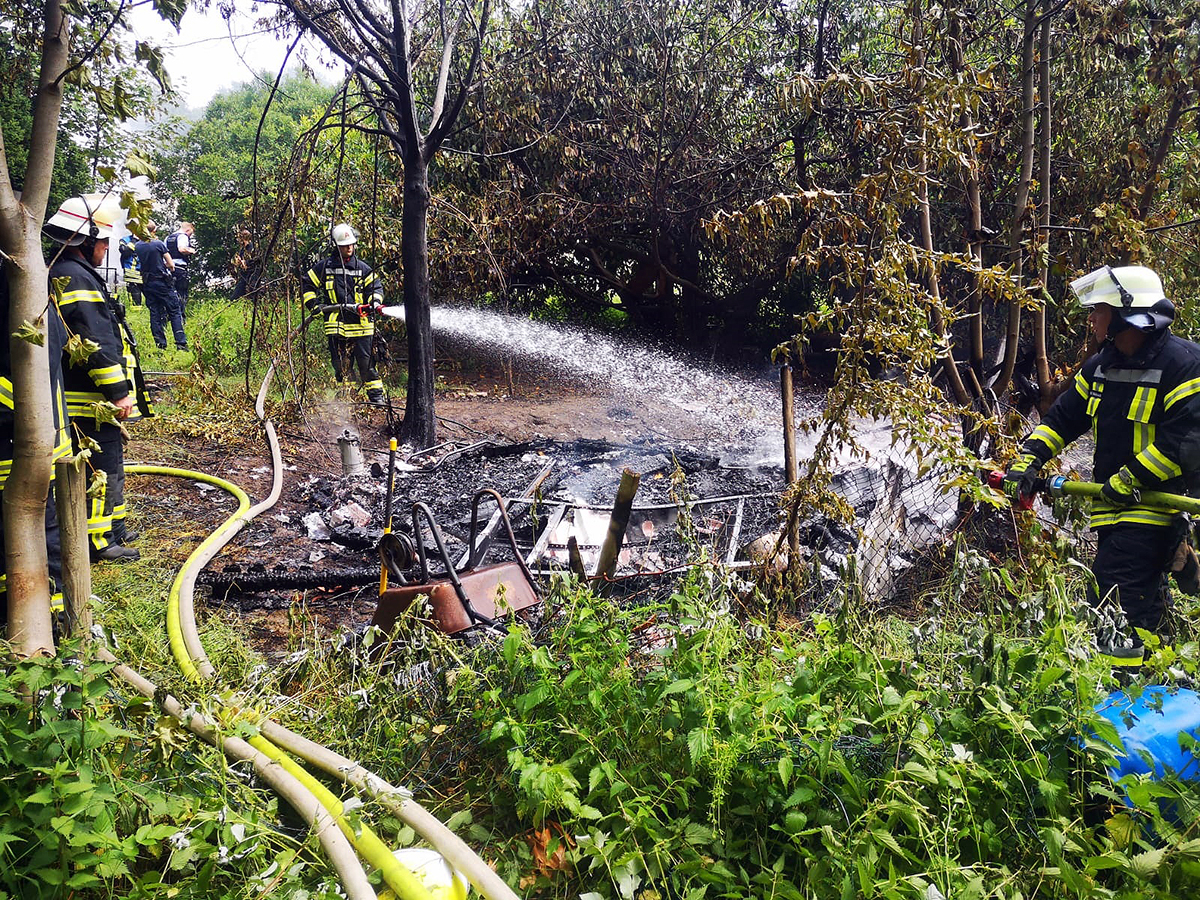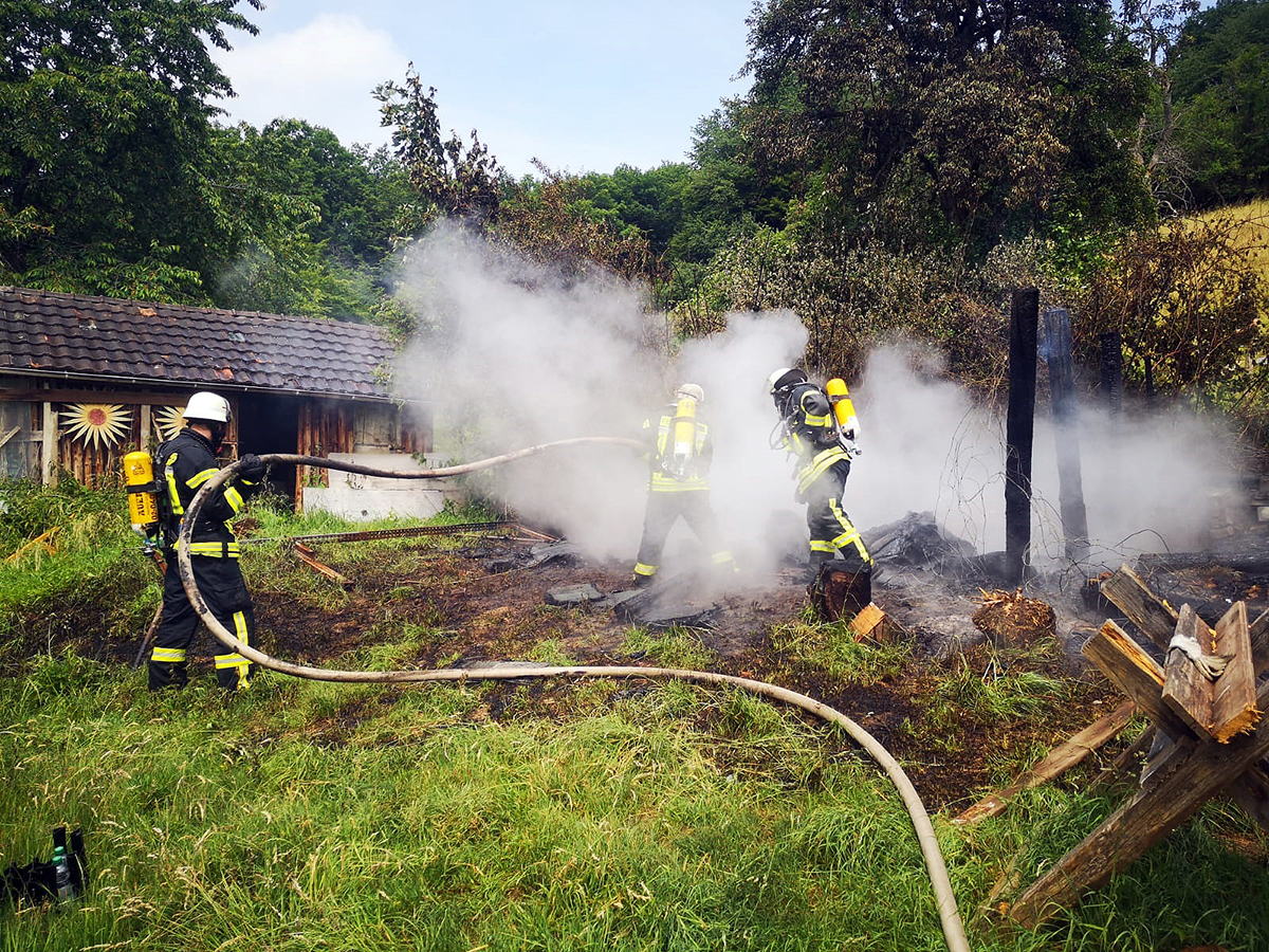 Nachdem die Feuerwehr die Wasserversorgung mit drei C-Rohren aus Richtung des Freibades und zwei weiteren C-Rohren den steilen Berg hinauf aus Richtung der Engelskirchener Innenstadt sichergestellt hatten, waren die Flammen aber zügig bekämpft. Beide Gartenhütten wurde durch das Feuer vollständig zerstört, ein Übergreifen auf einen weiteren Schuppen konnte verhindert werden. Im Einsatz waren etwa 60 Kameraden der Löschzüge Engelskirchen und Ründeroth sowie der Löschgruppe Loope.