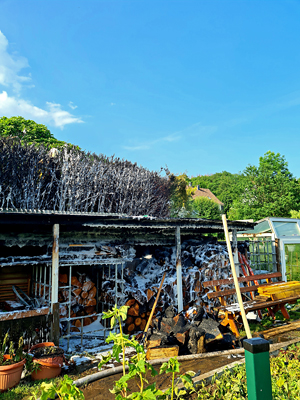 Anwohner hatten bereits erste Löschversuche unternommen und eine Ausbreitung des Feuers auf die Garage sowie das Wohnhaus verhindern können. Vier von ihnen wurden im Einsatzverlauf wegen eines Verdachts auf eine Rauchgasintoxikation durch den Rettungsdienst untersucht, blieben jedoch unverletzt.