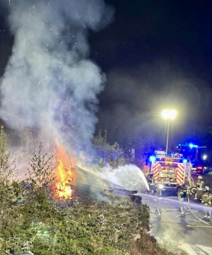 Brennender Holzstapel: Feuerwehr über vier Stunden im Einsatz