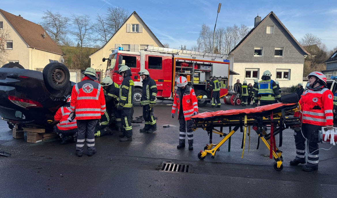 Gummersbach – Der Derschlager DRK-Ortsverein hatte die Feuerwehr zu einer gemeinsamen Übung eingeladen - Reale Szenarien wurden trainiert.