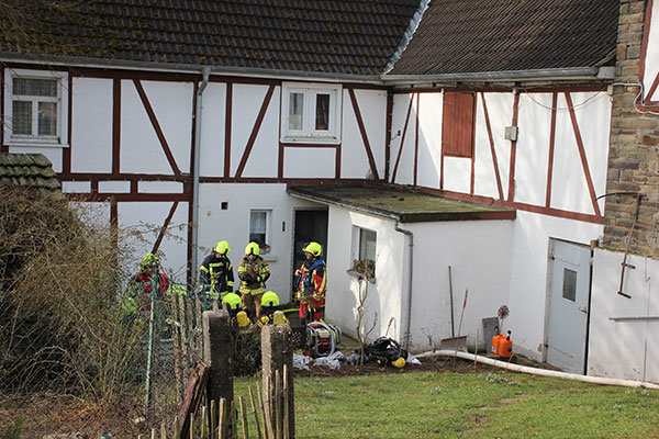 Kein Durchkommen gab es heute Vormittag für einige Stunden durch den Waldbröler Ort Seifen. Der Grund: Die Feuerwehr musste einen Brand in einem bewohnten Fachwerkhaus löschen. Das Feuer wurde als Rußbrand im Kamin um 9:53 Uhr gemeldet, wie Feuerwehrchef Daniel Wendeler vor Ort Auskunft gab. Abgesetzt hatten den Anruf die Anwohner selbst. Nachdem der Einsatzleiter und stellvertretender Feuerwehrleiter Rene Reissig-Hochweller als erstes in Seifen angekommen war, habe schnell die Einsatzstufe erhöht werden müssen, da deutlich wurde, dass man unter Atemschutz ins Gebäude muss.