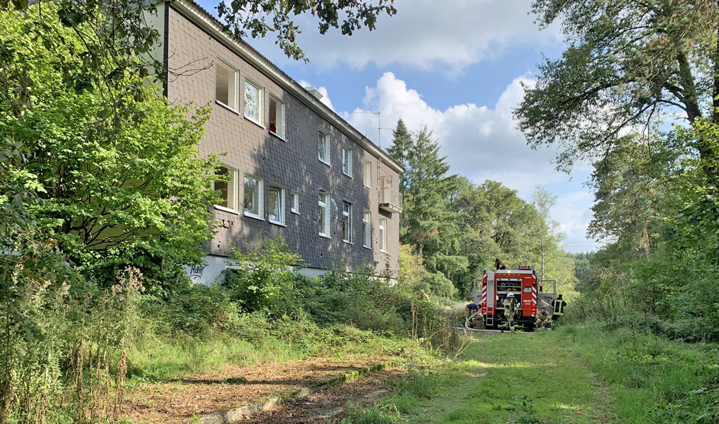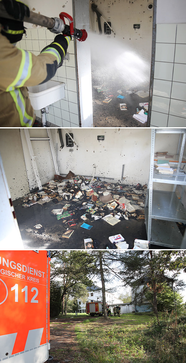 Reichshof - 50 Einsatzkräfte rückten zu einem Feuer im „Haus Spielfeld“ in Feld aus, im Keller standen etliche Bücher und Kartons in Flammen.