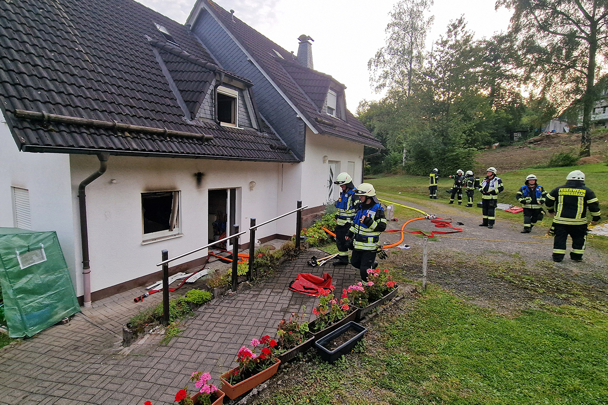 Um 19:37 Uhr riefen am Mittwochabend gleich mehrere Anwohner der Gummersbacher Ortschaft Erlenhagen den Notruf an. Aus dem Küchenfenster eines Doppelhauses schlugen Flammen. Unter der Leitung von Gummersbachs Wehrchef Frank Raupach konnte der erste Angriffstrupp das Feuer zwar schnell unter Kontrolle bringen, dennoch ist die betroffene Wohnung wohl vorerst unbewohnbar. „Durch den Rauchaustrag in das ganze Gebäude müssen wir von einem erheblichen Schaden ausgehen“, sagte Raupach vor Ort.