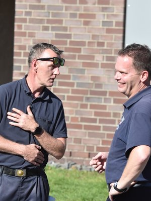 [Patrick Gelbach und Volker Nosek beglückwünschten am Lehrgangsende 40 Truppführern.]