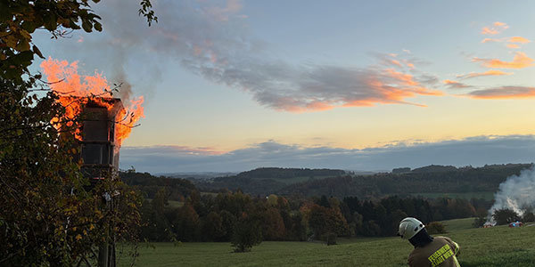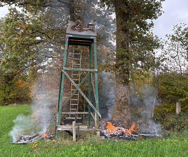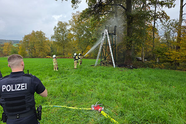 Nach zwei Bränden am Morgen: Weiterer Hochsitz in Flammen