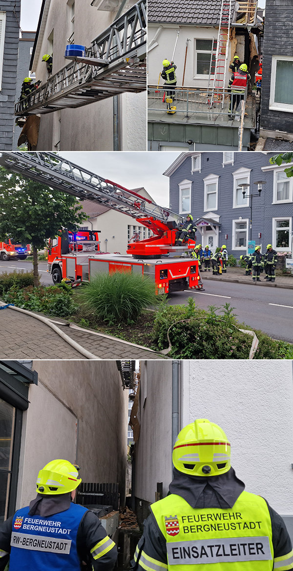 „Wir haben gestern Dach und Fassade großzügig geöffnet, sind auch bis zum Ursprung des Brandes gekommen, aber scheinbar hat sich das Feuer in der Fassade weiter nach vorne gefressen“, sprach Bergneustadts Wehrchef Michael Stricker von hochkomplizierten Löschmaßnahmen am gestrigen Dienstag für die Einsatzkräfte. „Offenbar sind wir nicht bis zum letzten Punkt gekommen, obwohl wir sicher waren, dass es so war.“