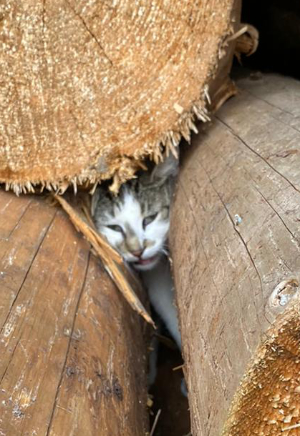Gegen 17:30 Uhr hatten besorgte Katzenbesitzer die Lindlarer Feuerwehr gerufen. Ihr Haustier hatte sich in einem sechs Meter hohen und 20 Meter breiten Holzstapel zwischen zwei Baumstämmen verfangen. Sieben Kameraden der Einheit Hohkeppel unter Leitung von Christoph Schumacher eilten nach Lennefer Mühle, um das Tier aus seiner misslichen Lage zu befreien. Überlegungen, den Holzeigentümer zu rufen, um die Fichtenstämme mit einem Kran anzuheben, wurden schnell verworfen. „Wenn sich dadurch nur ein Baumstamm bewegt hätte, wäre jede Hilfe für die Katze zu spät gekommen“, sagte Hans-Peter Scheurer von der Lindlarer Feuerwehr.