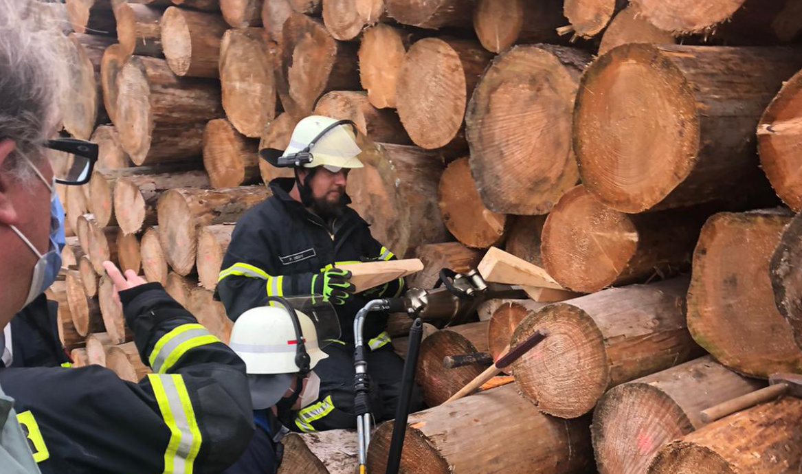 Man rückte mit einem sogenannten Spreizer vor, mit dem normalerweise Menschen aus Autos befreit werden. Nachdem die Einsatzkräfte den Stapel mit Holzkeilen gesichert hatten, hob man die Stämme um einige Zentimeter an. Die Katze konnte sich befreien und wurde ihren Besitzern unverletzt übergeben. Nach 45 Minuten war der Einsatz beendet.