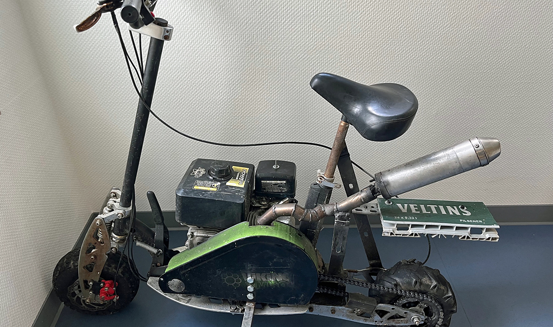Da staunte ein Motorradpolizist nicht schlecht, als er am späten Dienstagnachmittag auf der B 237 unterwegs war und ihm auf dem Gehweg ein recht eigentümliches Gefährt auffiel. Ein 17-Jähriger düste mit einem umgebauten Scooter Richtung Winterhagen. Der Beamte stoppte den Hückeswagener, um die Maschine näher unter die Lupe zu nehmen. Der Fahrer war bei der Umrüstung ziemlich kreativ: Er hatte den Rahmen eines E-Scooters mit einem Benzinmotor ausgestattet sowie ein paar stärkere Bremsen und einen Sitz angeschweißt. So groß der Einfallsreichtum auch war: Im öffentlichen Verkehr haben selbstgebaute Fahrzeuge nichts zu suchen. Dem 17-Jährigen fehlte eine gültige Fahrerlaubnis, zugelassen und versichert war das Vehikel auch nicht. Ihn erwartet nun ein umfangreiches Strafverfahren, das Gefährt wurde sichergestellt, teilte die Polizei mit.