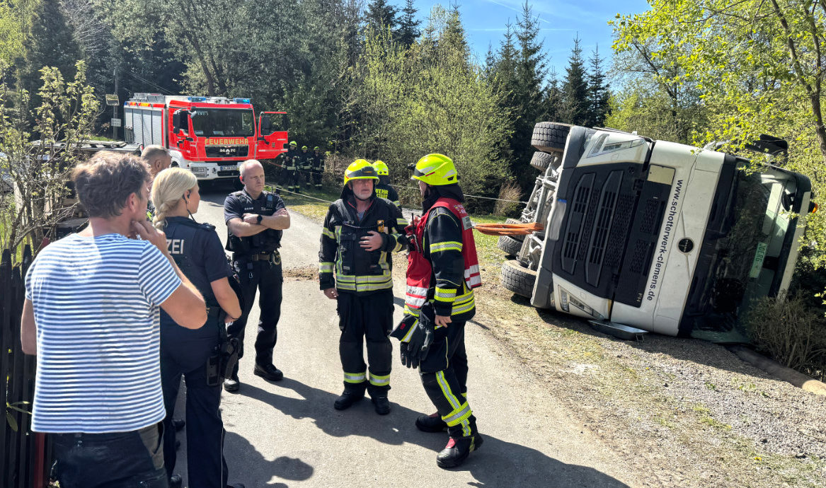 Lastwagen beim Entladen umgekippt – Eine Person verletzt