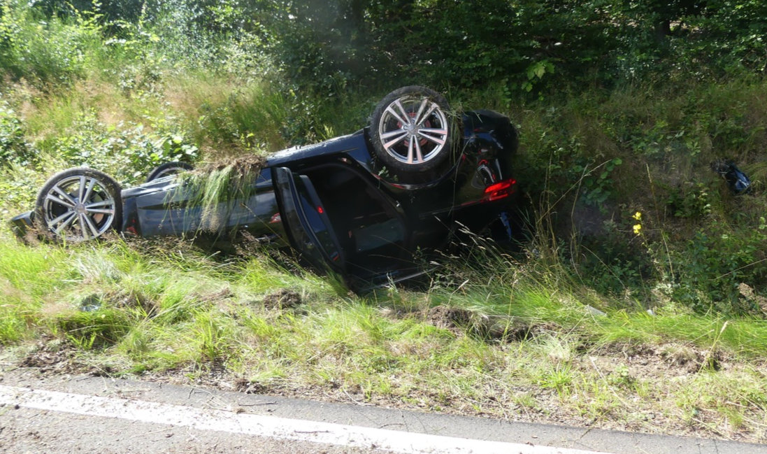 Mit dem Auto überschlagen - Porschefahrer flüchtet