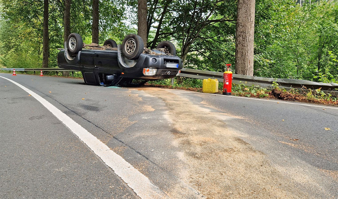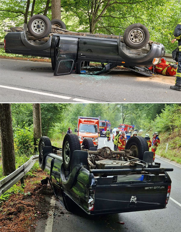 Auf dem Dach landete am Samstag gestern ein Nissan Pick-up in Engelskirchen, teilt die Polizei mit. Die 18-jährige Fahrerin war mit ihrem Auto auf der Horpestraße ins Schleudern geraten. Gegen 12 Uhr war die Engelskirchenerin mit ihrem Auto auf der Horpestraße (L 299) aus Engelskirchen kommend in Richtung Lindlar unterwegs. In einer Linkskurve kam sie zunächst nach rechts von der Fahrbahn ab, streifte dort die Schutzplanke und schleuderte anschließend zurück auf die Straße.