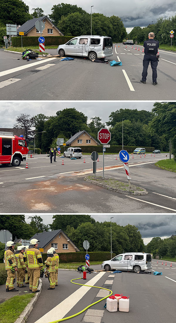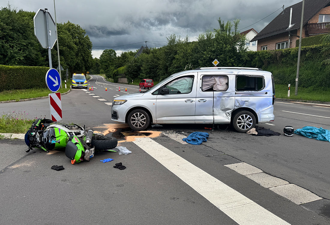 Gestern Abend gegen 19:20 Uhr wurde ein Motorradfahrer aus Wiehl durch eine Kollision mit einem Auto an der Kreuzung L 339/Kampstraße in Oberwiehl lebensgefährlich verletzt. Der 39-Jährige war vom Wiehler Zentrum kommend in Richtung Mühlenau unterwegs. Ein 62-jähriger Autofahrer wollte von der Kampstraße die Kreuzung überqueren und übersah dabei laut Polizei den vorfahrtsberechtigten Motorradfahrer, sodass es zum Zusammenstoß kam.
