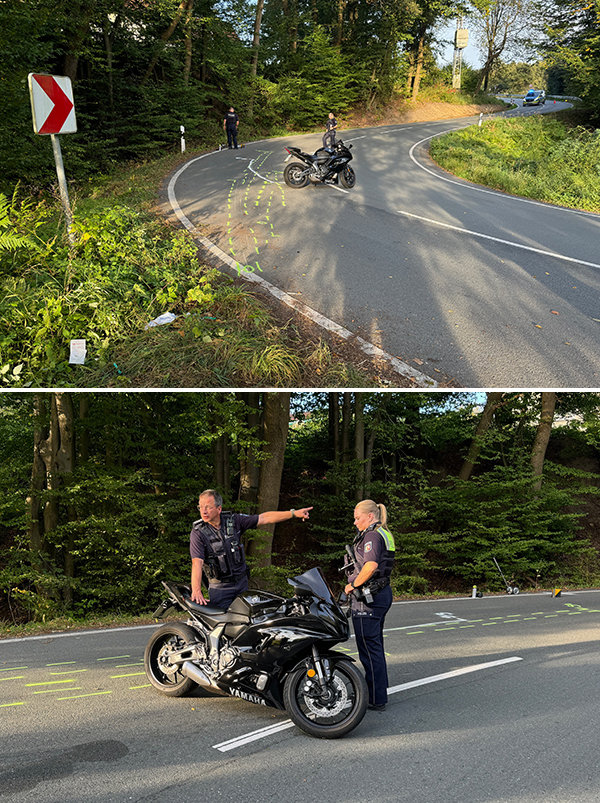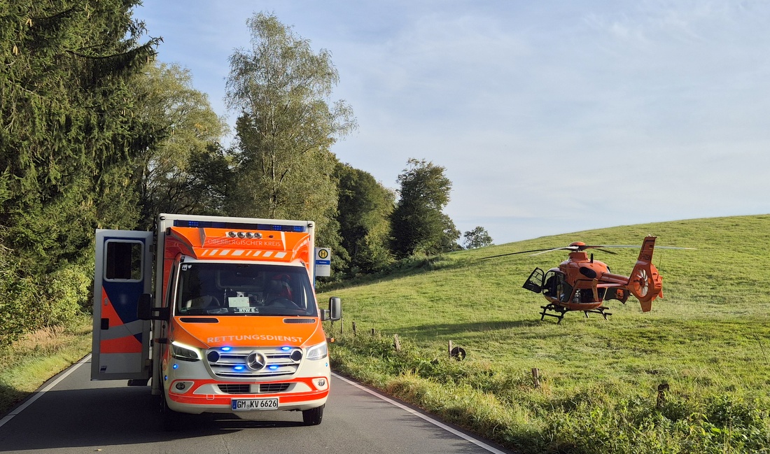 Die 19-Jährige rutschte mit ihrer Maschine von der Fahrbahn in den rechten unbefestigten Straßengraben. Dabei zog sie sich schwere Verletzungen zu. Vor Ort eintreffende Zeugen leisteten Erste Hilfe. Die junge Frau wurde später per Rettungshubschrauber in eine Kölner Klinik geflogen. Das Motorrad war noch fahrtüchtig und wurde von der Motorradgruppe vom Unglücksort weggefahren. Für den Zeitraum der Unfallaufnahme war die Landesstraße gesperrt.