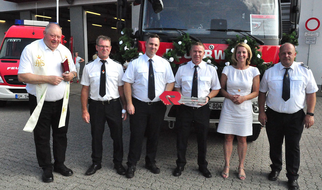 Die Bürgermeisterin übergab den symbolischen Schlüssel dem Leiter der Feuerwehr Peter Rothmann, der ihn unmittelbar an Andre Blank, seinem Stellvertreter und Zugführer der Feuerwehr im Löschzug Stadtmitte weiterreichte. Rothmann wünschte der Mannschaft und dem Fahrzeug eine stets sichere und unfallfreie Fahrt. Alle Beteiligten bedankten sich bei den Verantwortlichen in der Stadtverwaltung und den politischen Gremien für die gute Zusammenarbeit.
