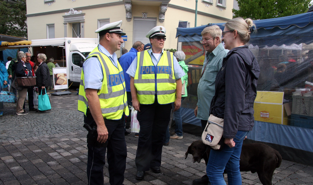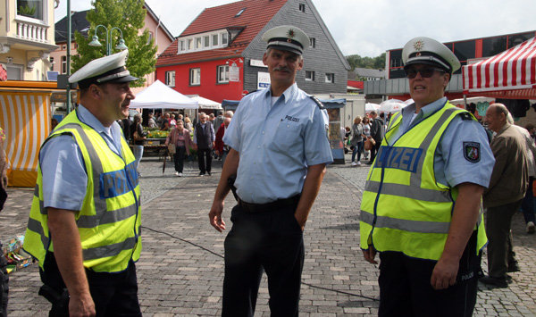 Hierbei arbeiten sie eng mit den Ordnungsämtern zusammen - neben einem regen Austausch gehören auch gemeinsame Streifen zum Konzept einer starken Ordnungspartnerschaft. „Ihr seid der erste Ansprechpartner für den Bürger. Die Stelle ist dafür gedacht, dass sich der Bürger mit kleinen sowie großen Problemen oder Alltagsdingen an die Polizei wenden kann, sofern es kein Notfall ist“, erklärt Polizeihauptkommissar Michael Tietze, der der Vorstellung des Teams beiwohnte. Gemeinsam stattete man dem Waldbröler Viehmarkt einen Besuch ab, bei dem die Bezirksbeamten sofort angesprochen wurden und viel Zuspruch erhielten.