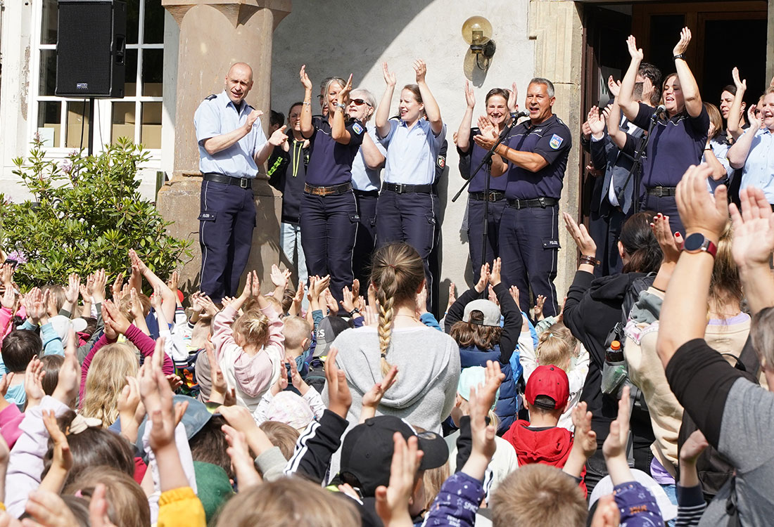 Zahlreiche Kinderaugen haben heute auf die Gruppe Polizisten vor dem Schloss Gimborn in Marienheide geschaut, denn die Polizei feiert bis einschließlich morgen das traditionelle Puppenbühnenfestival. Im Fokus des Festivals steht die Verkehrssicherheitsarbeit. Uwe Petsching von der Verkehrsunfallprävention der Polizei des Oberbergischen Kreises eröffnete zusammen mit dem stellvertretenden Bürgermeister von Marienheide, Thomas Garn, und Maria del Carmen Fernandez Mendez vom NRW-Innenministerium das Festival, wie die Polizei mitteilt. Die Puppenspieler erwarten heute und morgen etwa 1.600 Kindergartenkinder und ihre Erzieherinnen und Erzieher, die aus allen Teilen Oberbergs anreisen. Dabei werden die Oberberger durch die Polizei-Puppenbühnen aus Düsseldorf, Kleve, Unna und Bielefeld unterstützt.