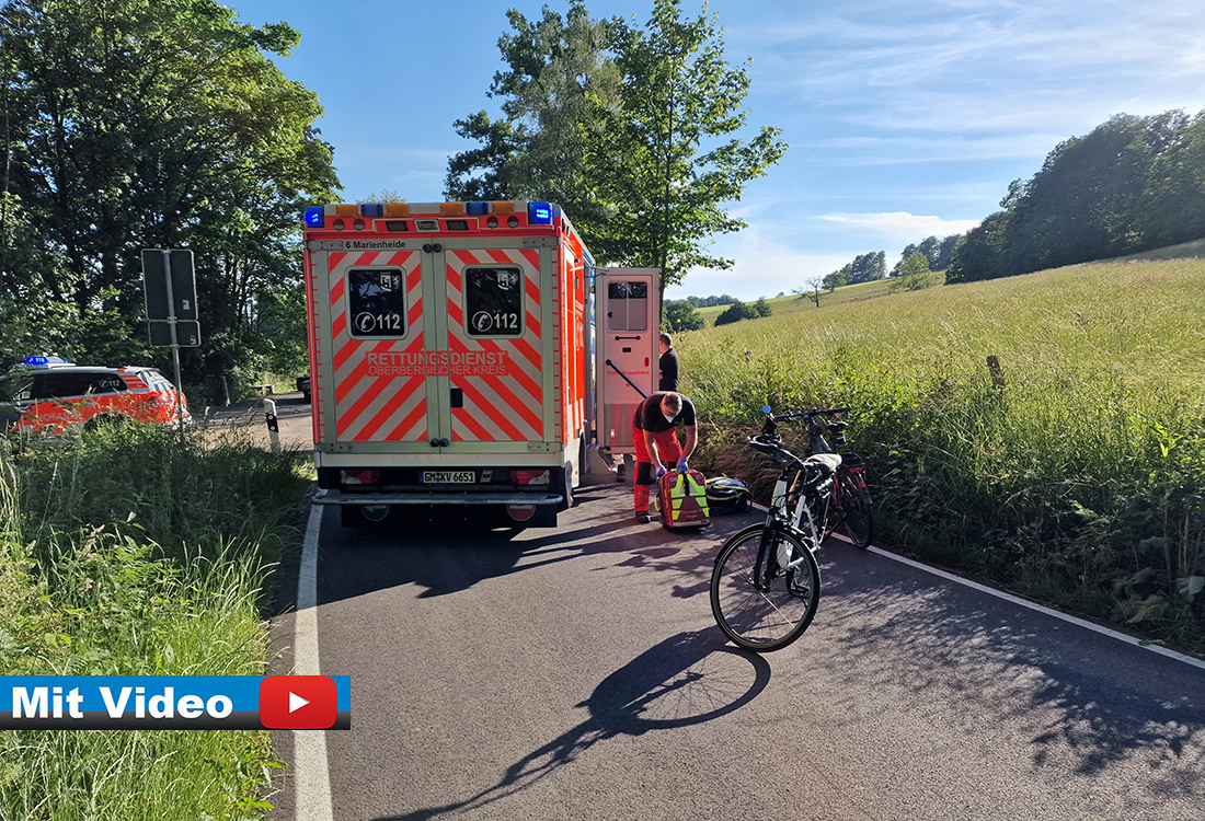 Da die Frau laut Polizei keinen Helm trug, zog sie sich bei dem Sturz schwere Kopfverletzungen zu, war aber ansprechbar. Nach der notärztlichen Versorgung wurde die 55-Jährige mit dem Rettungswagen nach Gummersbach ins Krankenhaus eingeliefert. Der ebenfalls alarmierte Rettungshubschrauber musste nicht eingesetzt werden. Zum einen hatte sich der Zustand der Fahrradfahrerin stabilisiert, zum anderen hatte die Klinik Siegen nach Polizeiangaben keine Kapazitäten mehr, sodass der Helikopter nach Köln hätte fliegen müssen. Die L 337 war für die Dauer der Rettungsmaßnahmen für etwa eine Stunde gesperrt. Am Fahrrad entstand geringer Sachschaden.