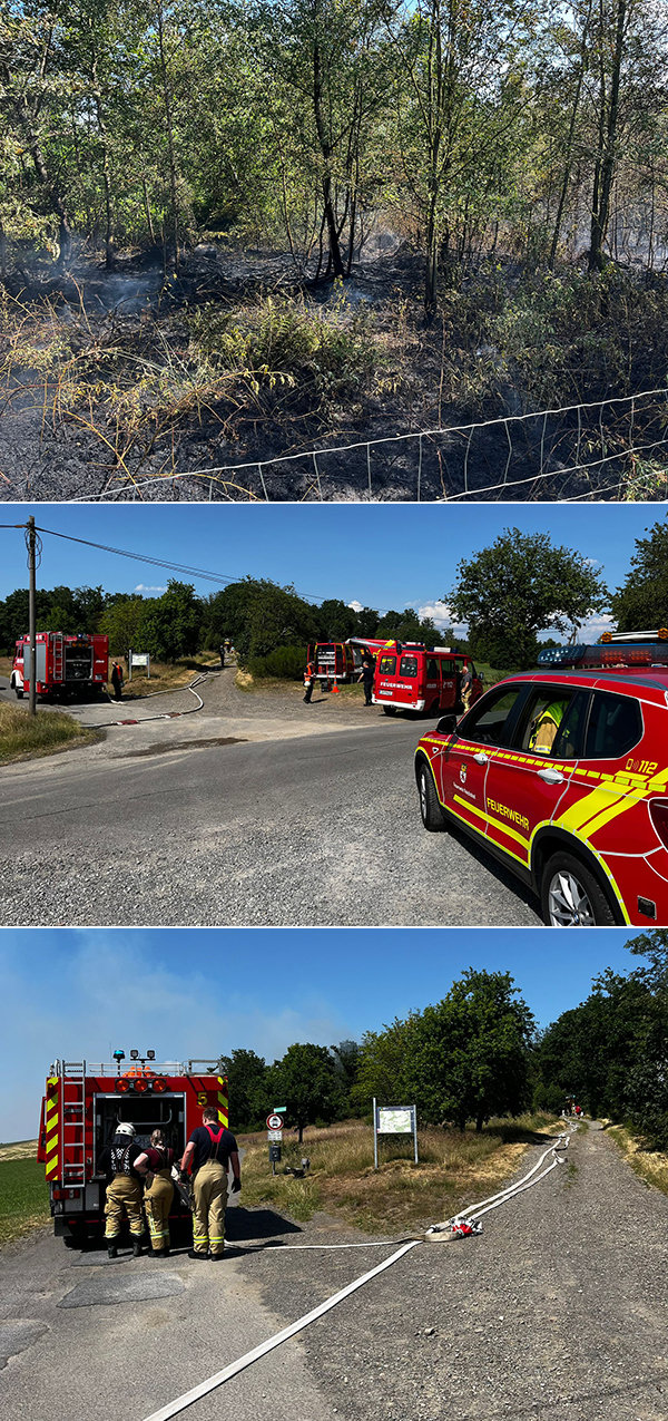 Rund 1.200 Quadratmeter Unterholz brennen an der Grenze zu Rheinland-Pfalz